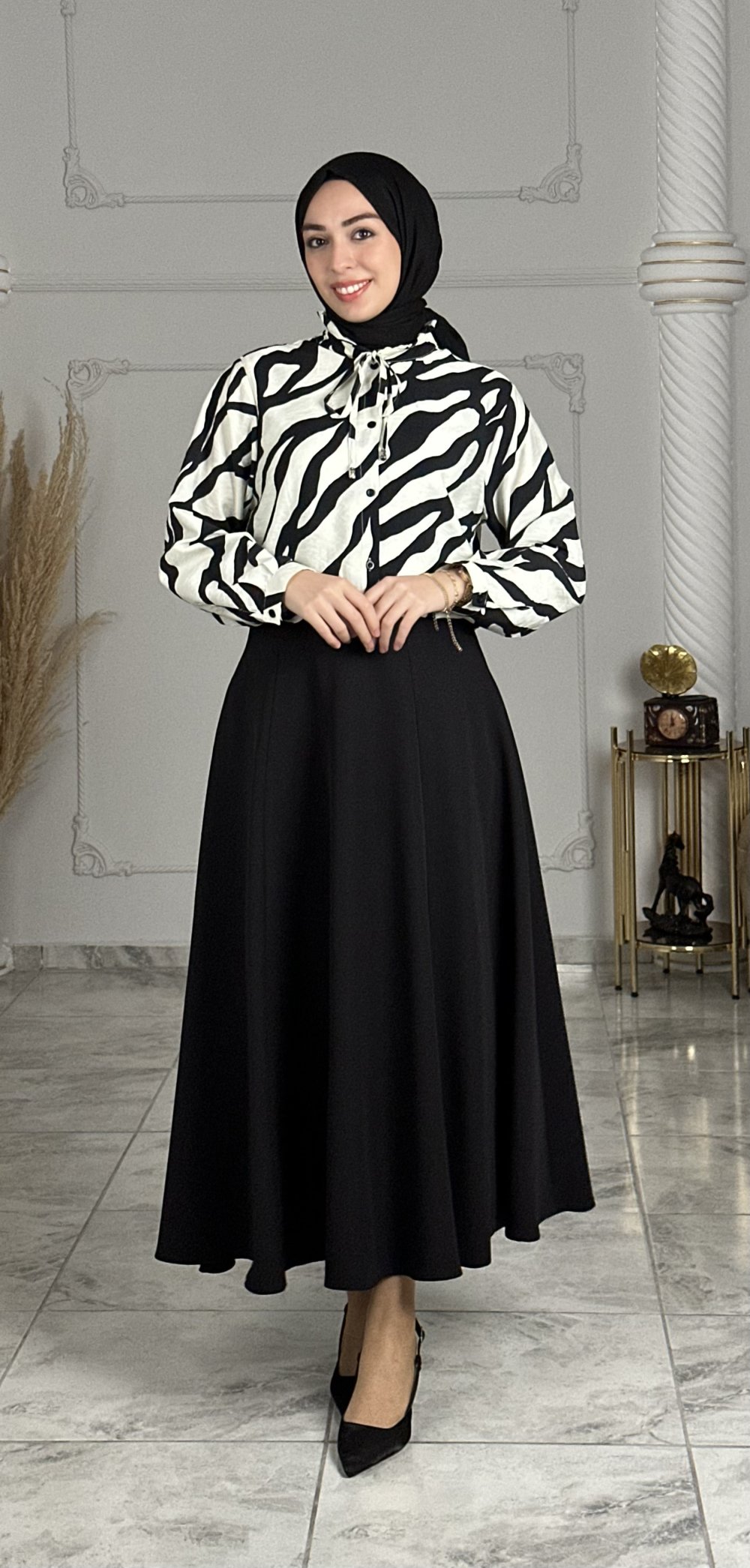 Açelya Gömlek Siyah Beyaz