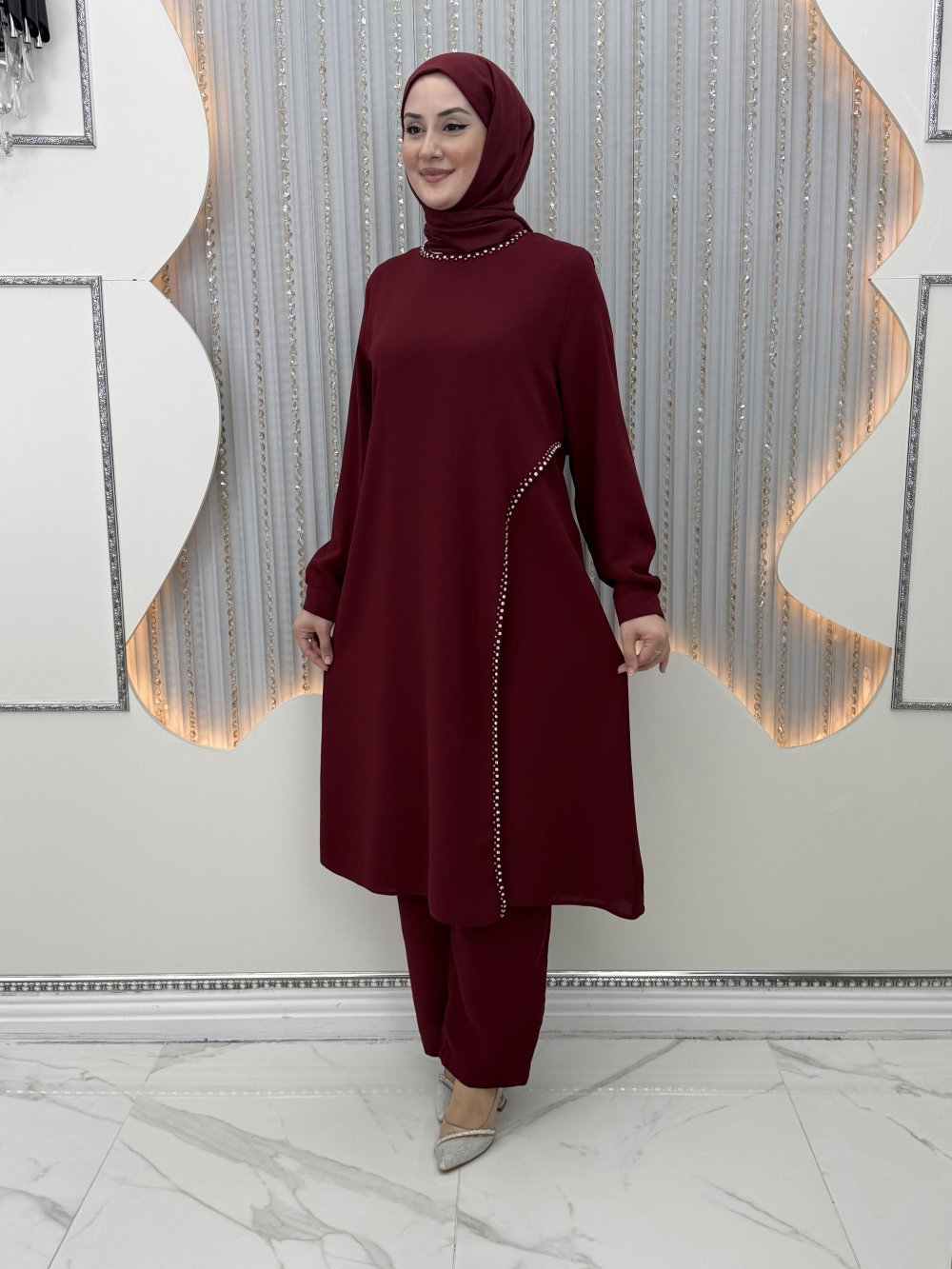 Akım Pantolonlu Takım Bordo