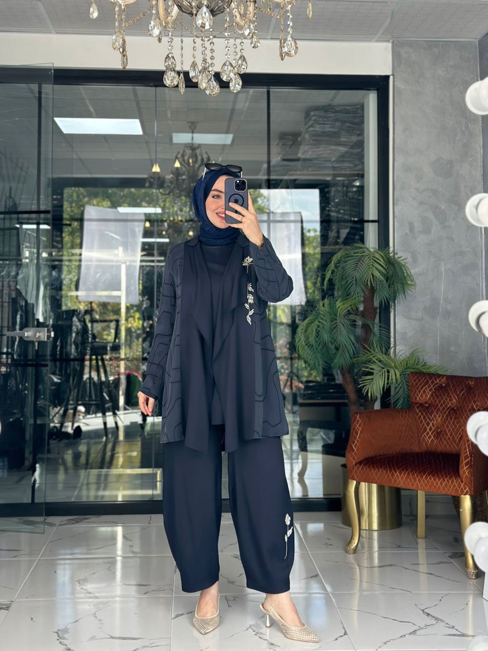 Kumaşı jakarlı qupradır. İçliği uzun kolludur. Pantolon beli lastiklidir.