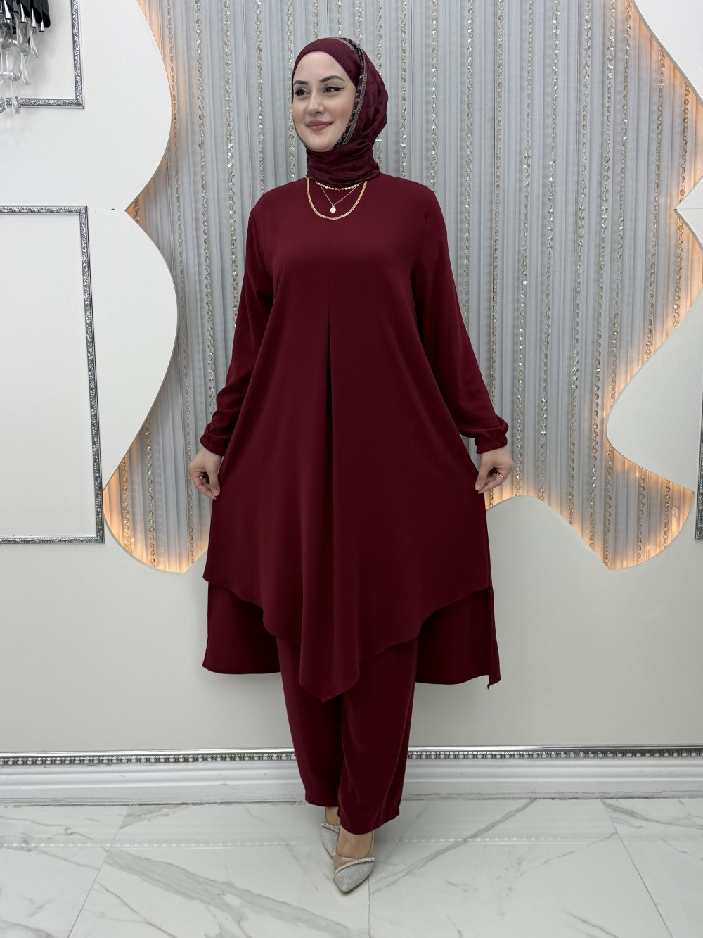 Amara Pantolonlu Takım Bordo