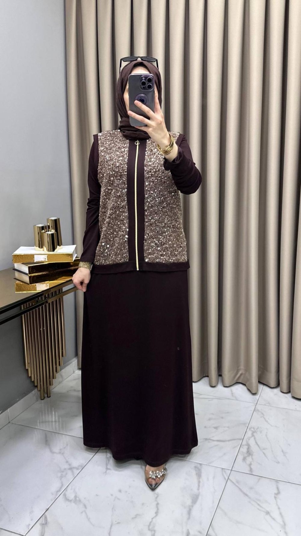 Asel Elbise Yelek Takım Kahve