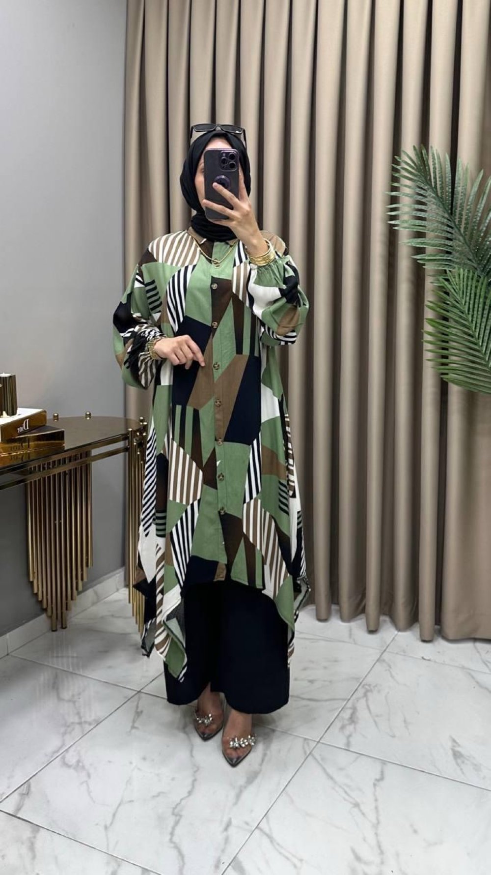 Tunik , boydan komple düğmelidir,