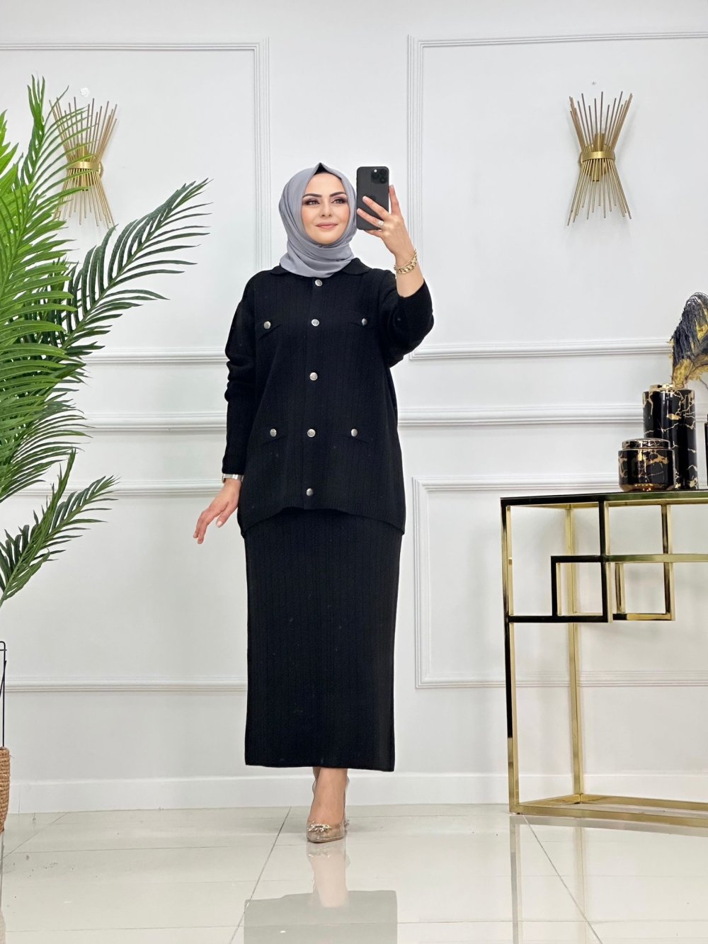 AYBÜKE ETEKLİ TAKIM-SİYAH