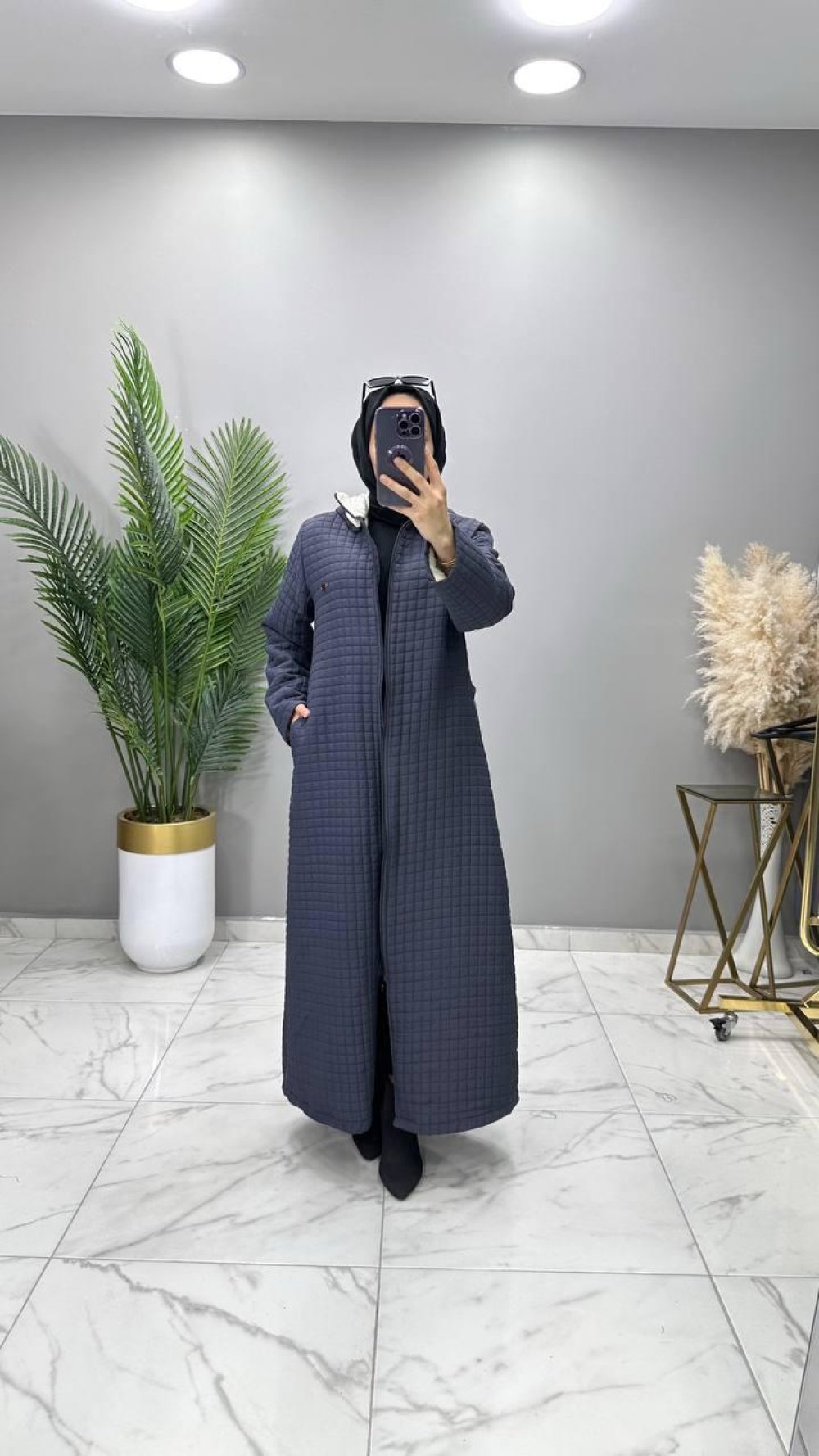 Aydan Kapitone Kürklü Mont Füme