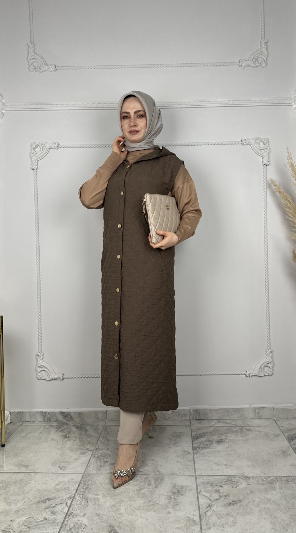 Ayla Kapitone Yelek Kahverengi