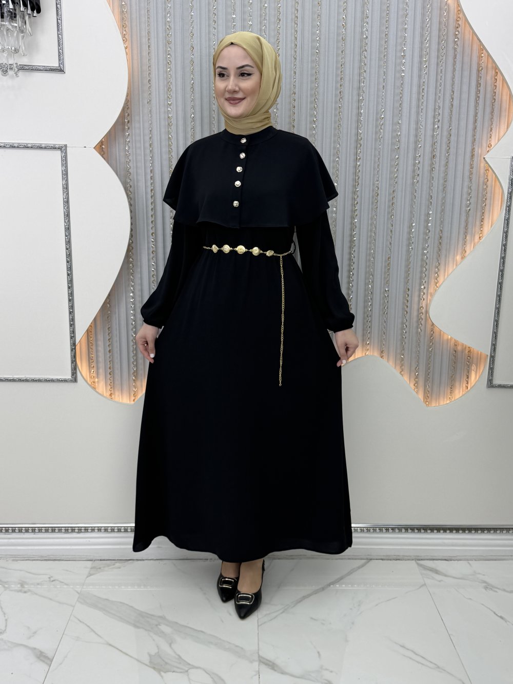 Pelerin önden taş düğmelidir