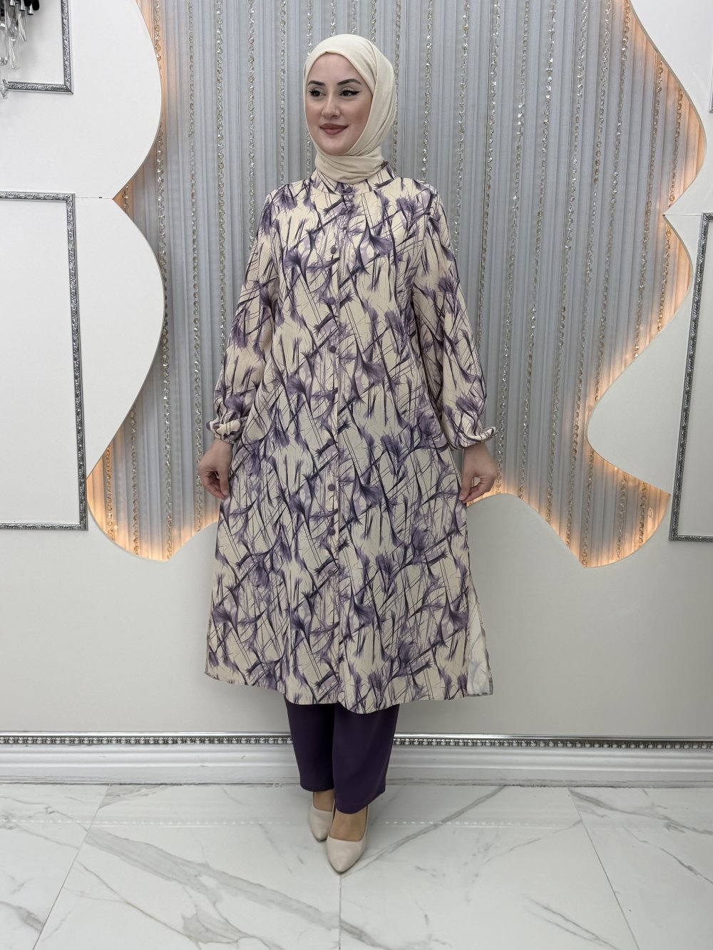 Belkıs Pantolonlu Takım Mor
