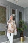 Dijital Baskı Empirme Kumaştır. Tunik Gizli Düğmedir.Pelerinli, Manşet Koldur.