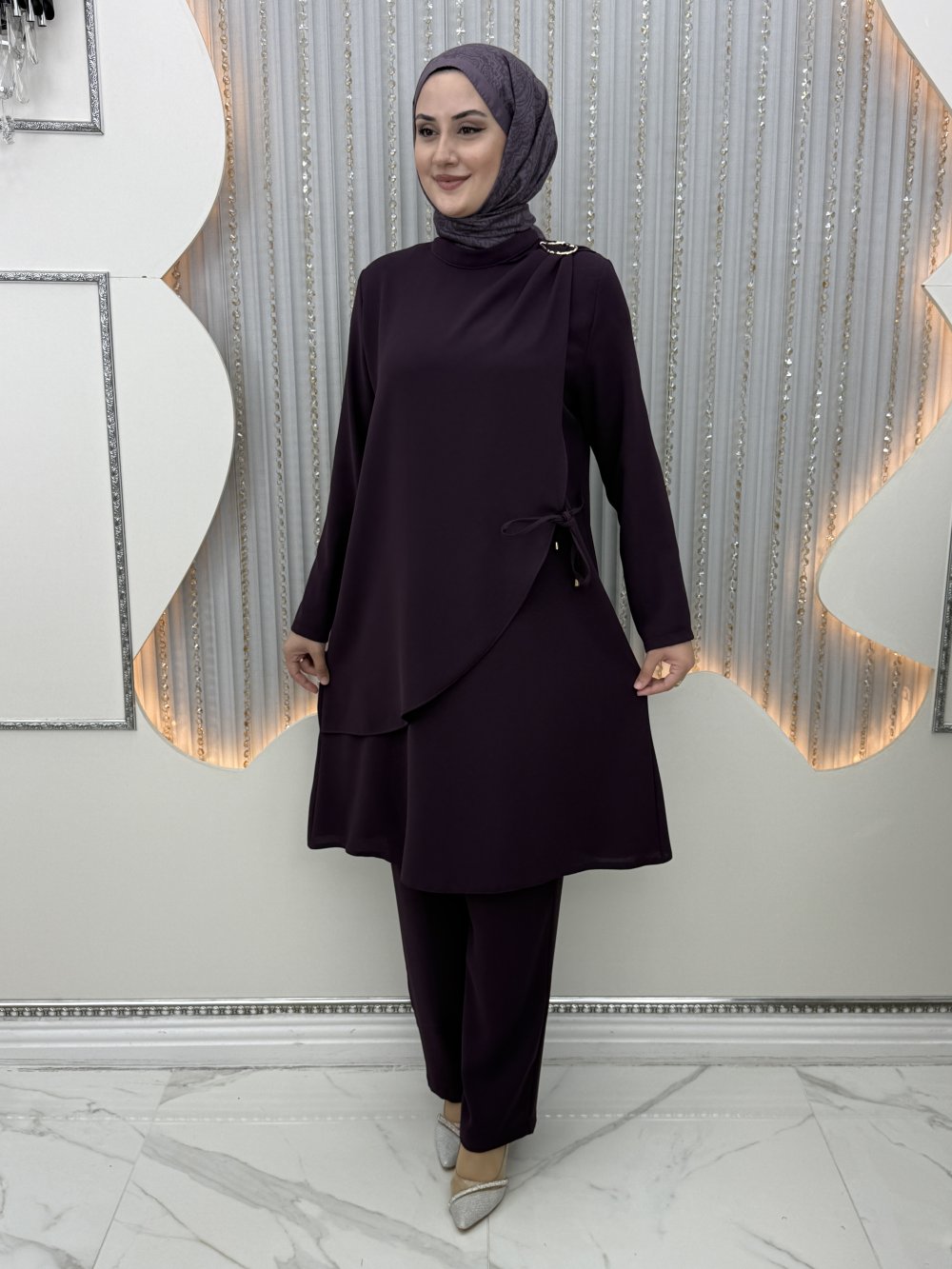 Ceylin Pantolonlu Takım Mor