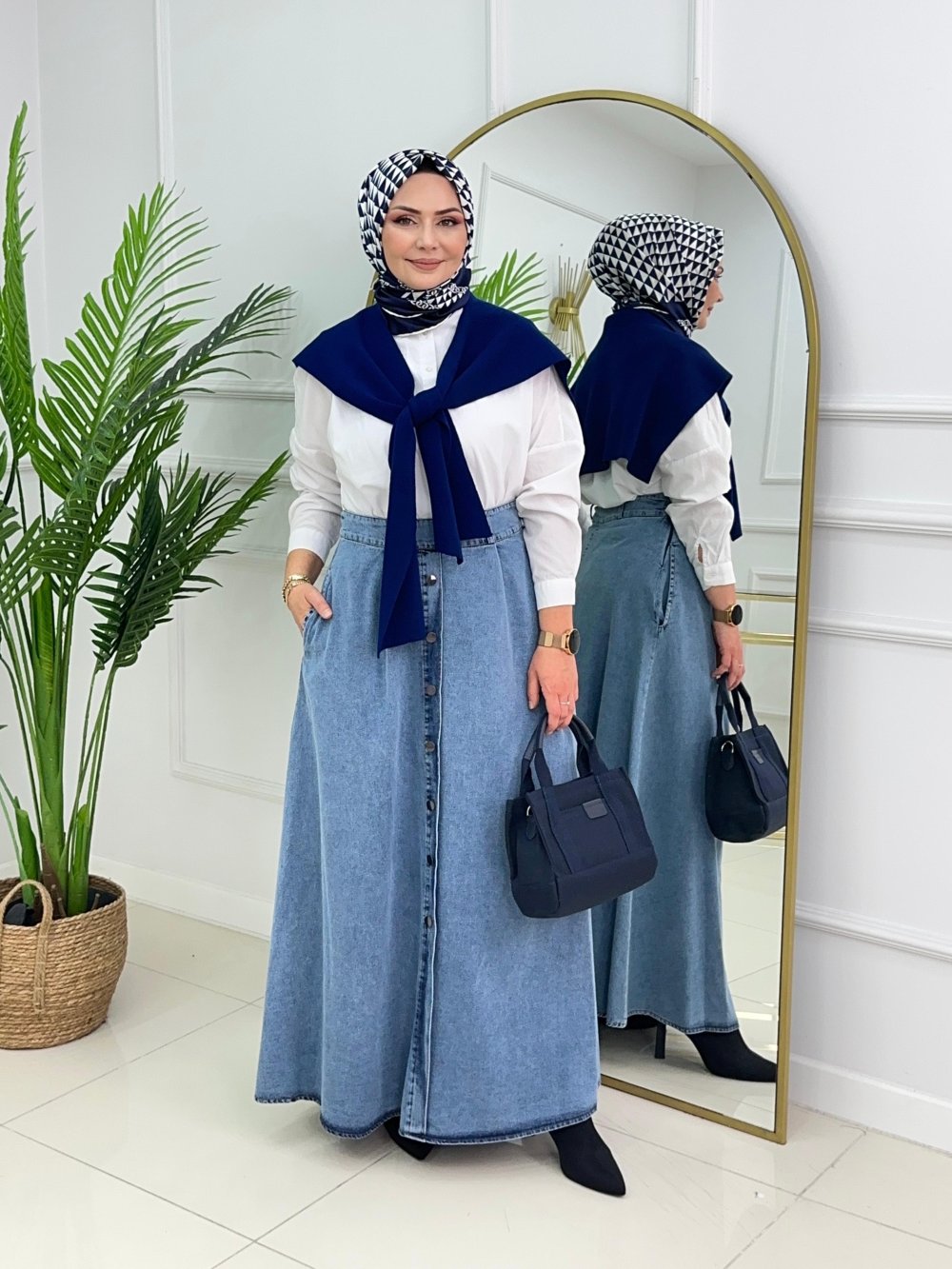 DÜĞMELİ DENİM ETEK - MAVİ