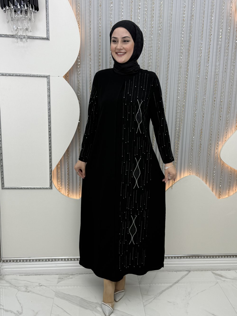 Ella Taşlı Abiye Siyah