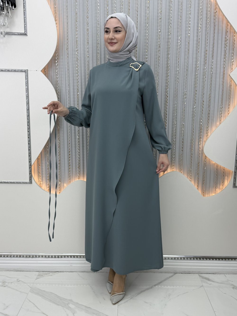 Tek omuz taş detaylı