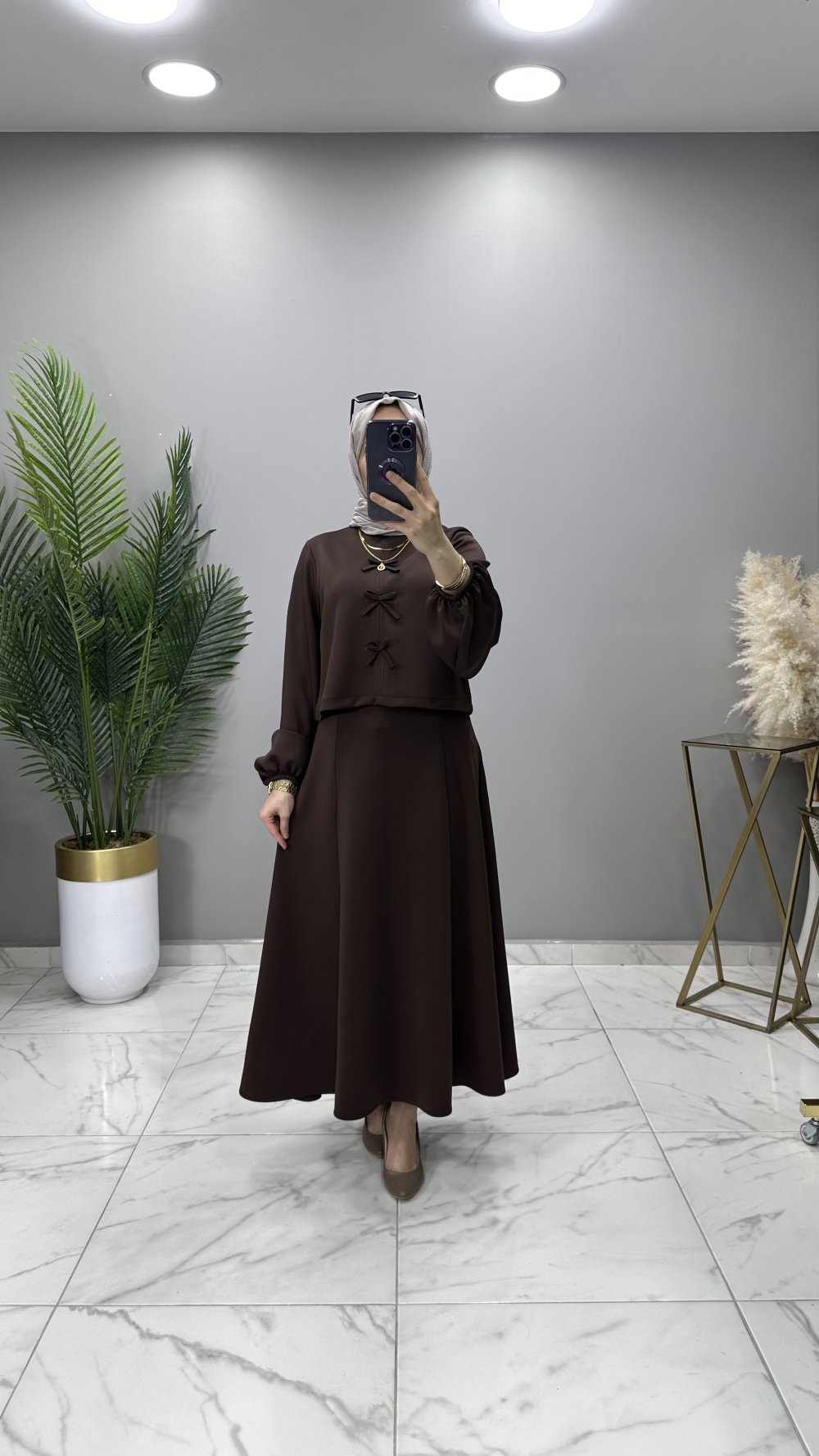 FİYONKLU TAKIMIMIZ KOD 4307, 40/42/44/46/48 bedenler Dabl Krep Kumaş Arkası fermuarlı etek boy 90 cm Üst boy 50 cm