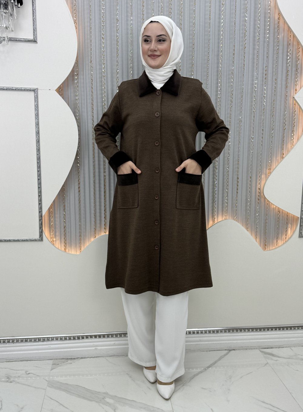 Yaka kürk detaylı