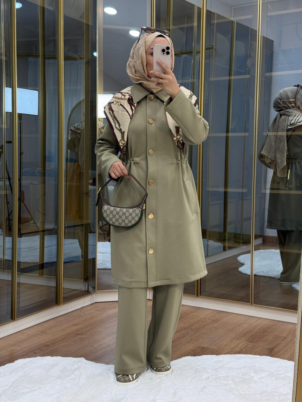 Gold Düğmeli Beli büzgülü Scuba Takım Haki