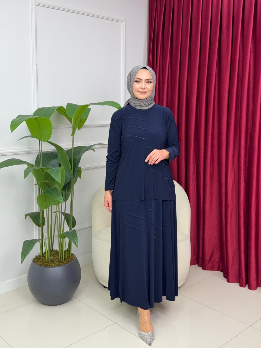 GÜLBEN ETEKLİ TAKIM - LACİVERT