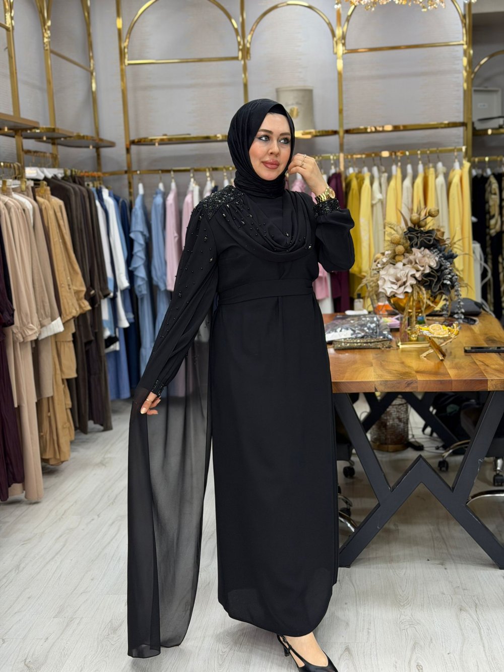 Kumaşı kreptir. Üzerinde şifon tül vardır ve çıkmaz. Taşları çakmadır.