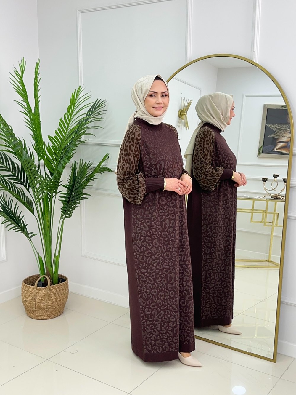 HAVVA MERSERİZE ELBİSE - ACI KAHVE