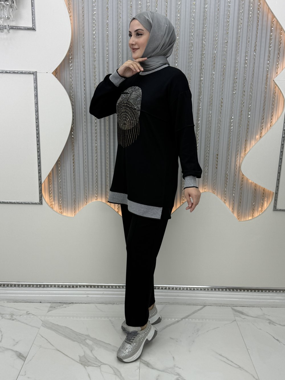 Hilal Pantolonlu Takım Siyah