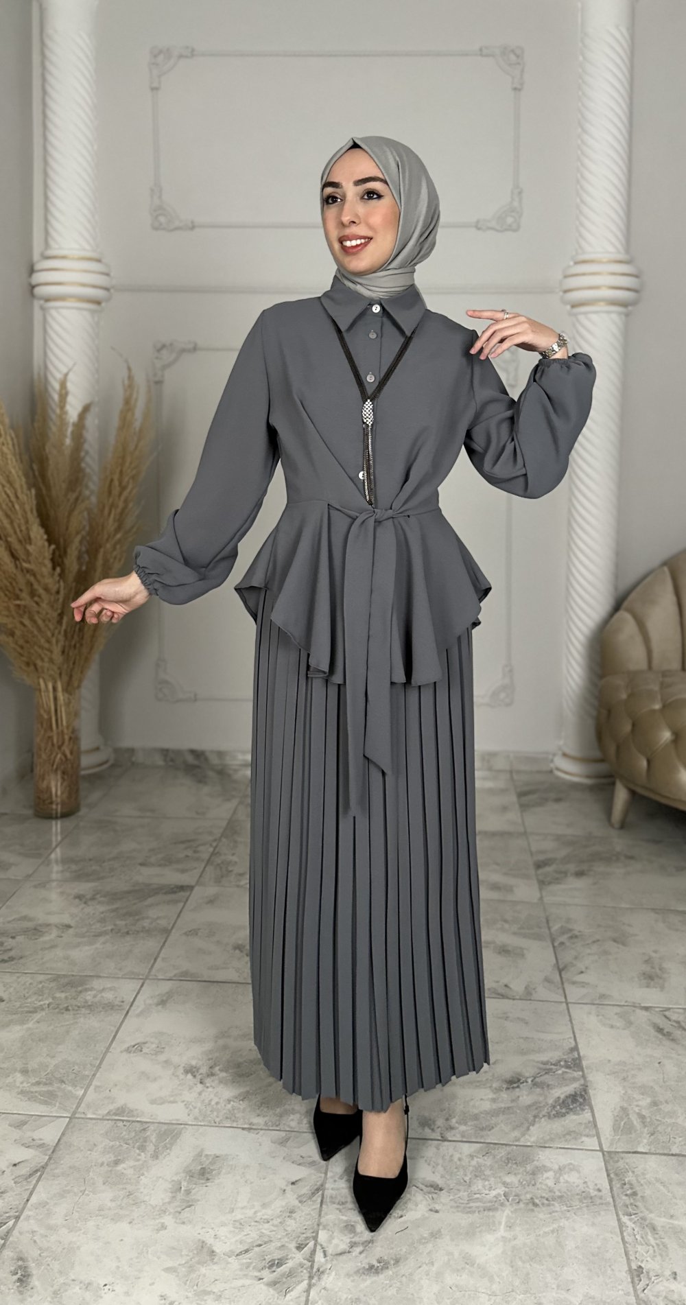 Hümeyra Etekli Takım Gri
