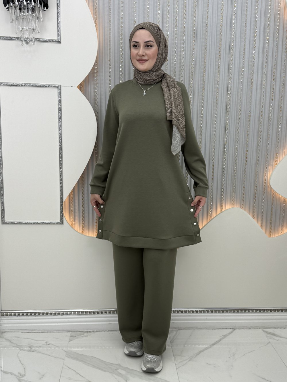 Tunik etek ucu yanlardan çıt çıt düğmeli
