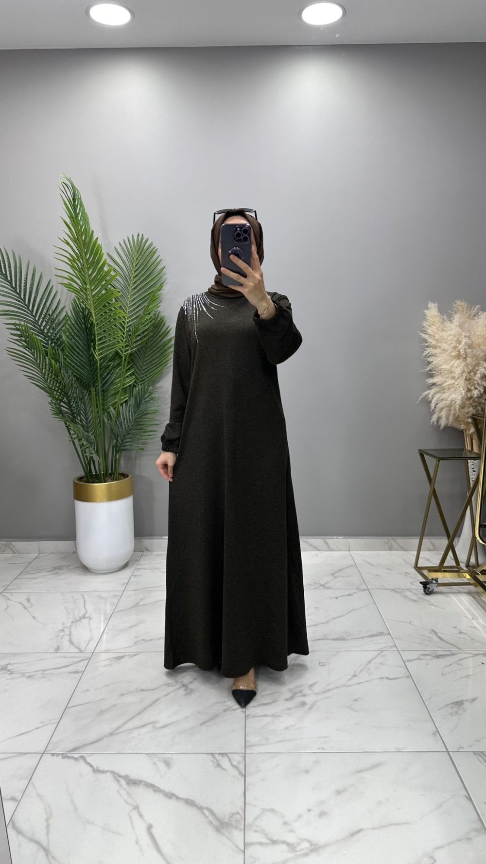 İpek Elbise Kahve