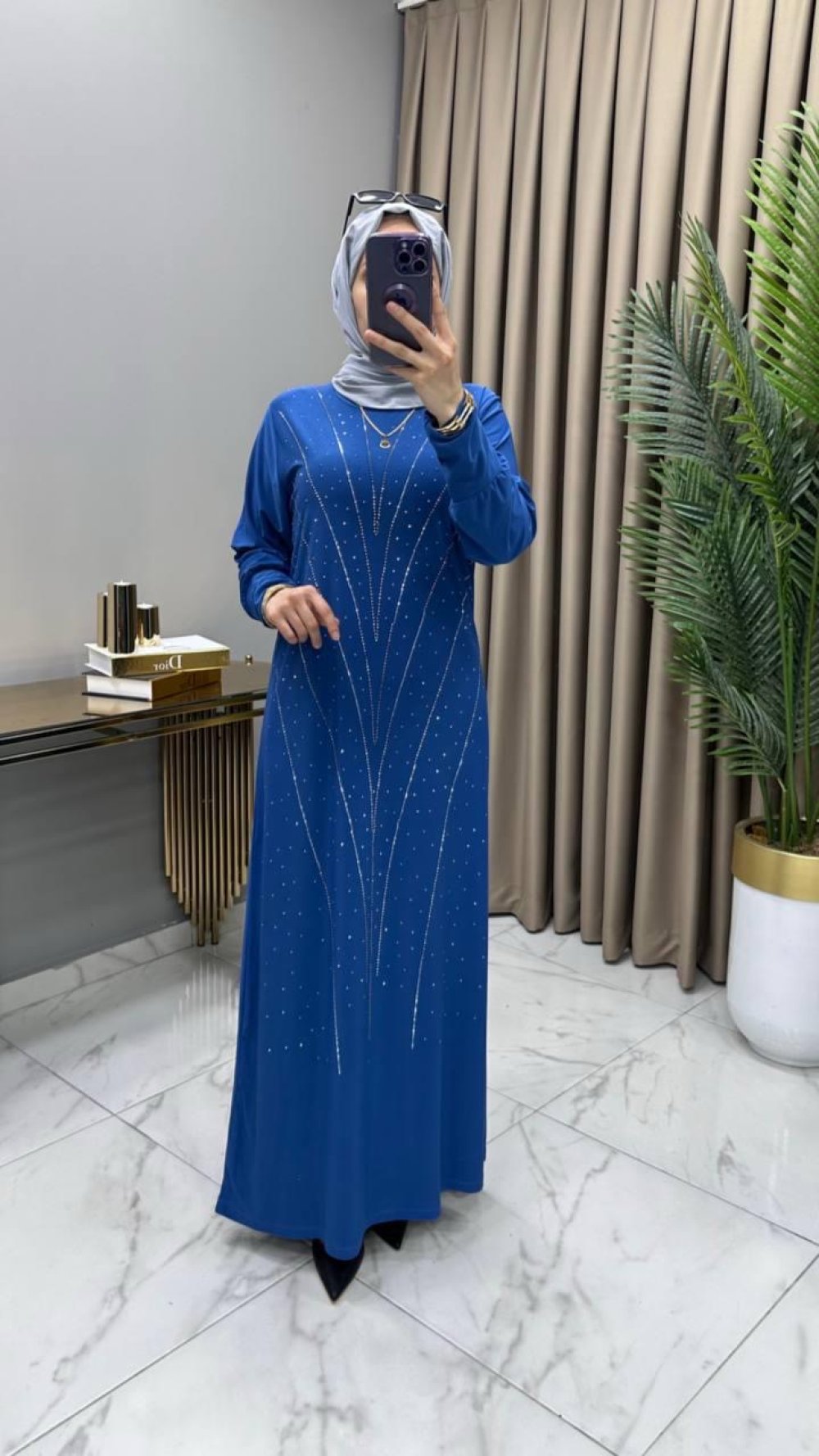 Işıltı Abiye Elbise İndigo