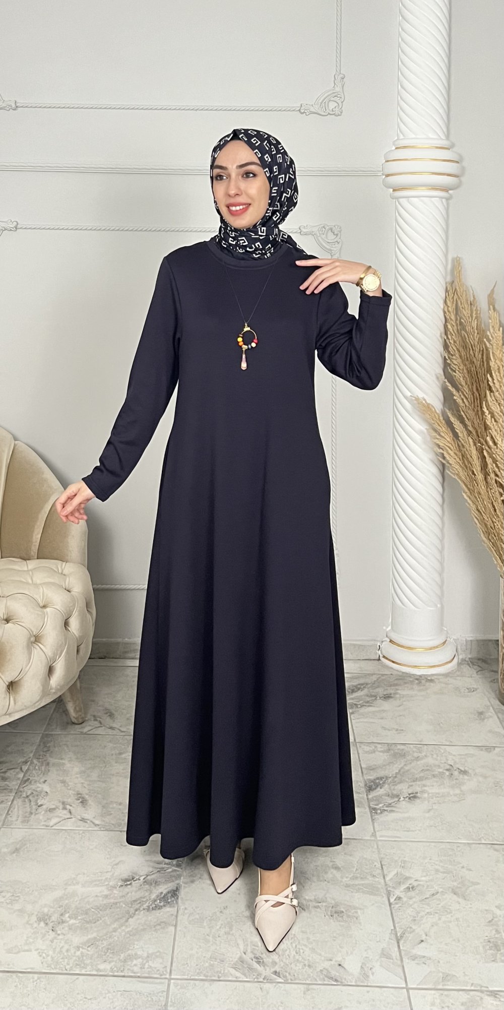 Kolye Hediyeli Esin Elbise Füme