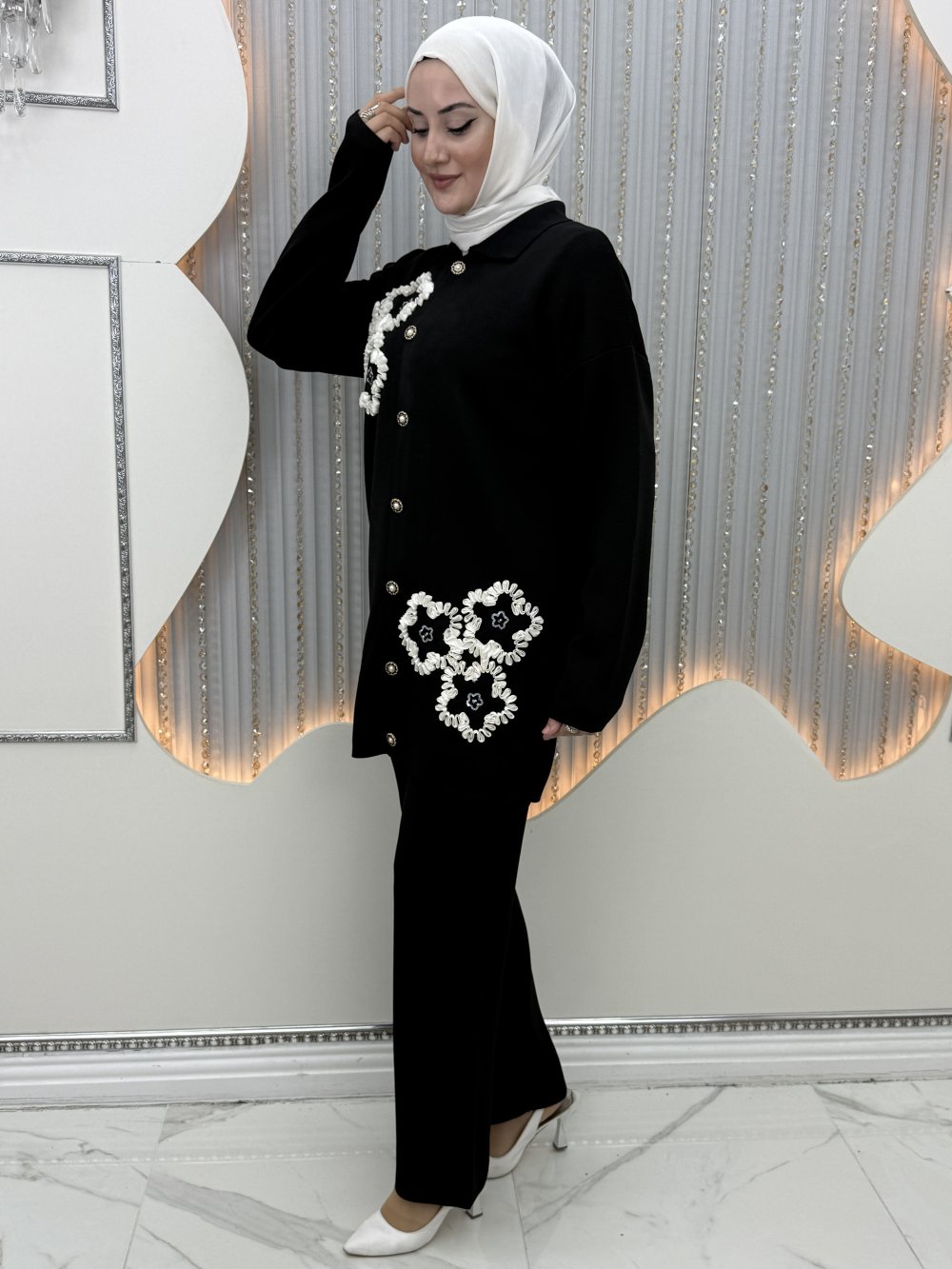 Yanları saten çiçek detaylı