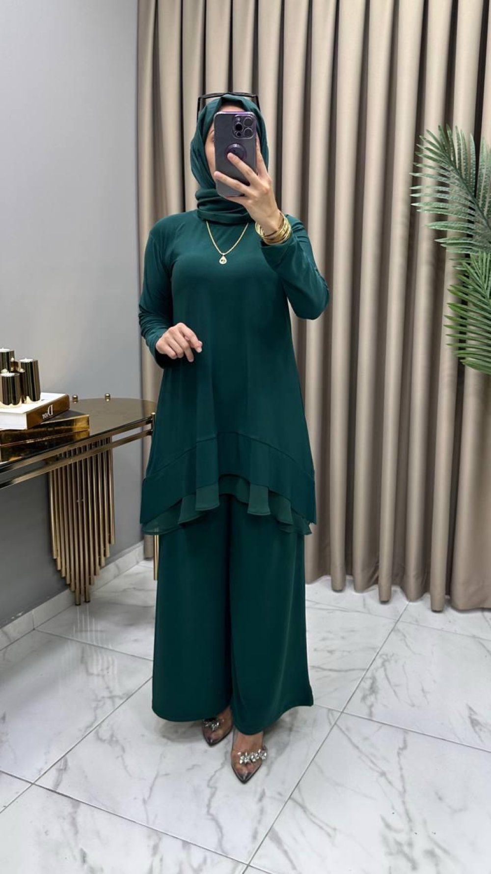 Tunik altı şifon detaylı (ön boy 75 cm / yan boy 90 cm)