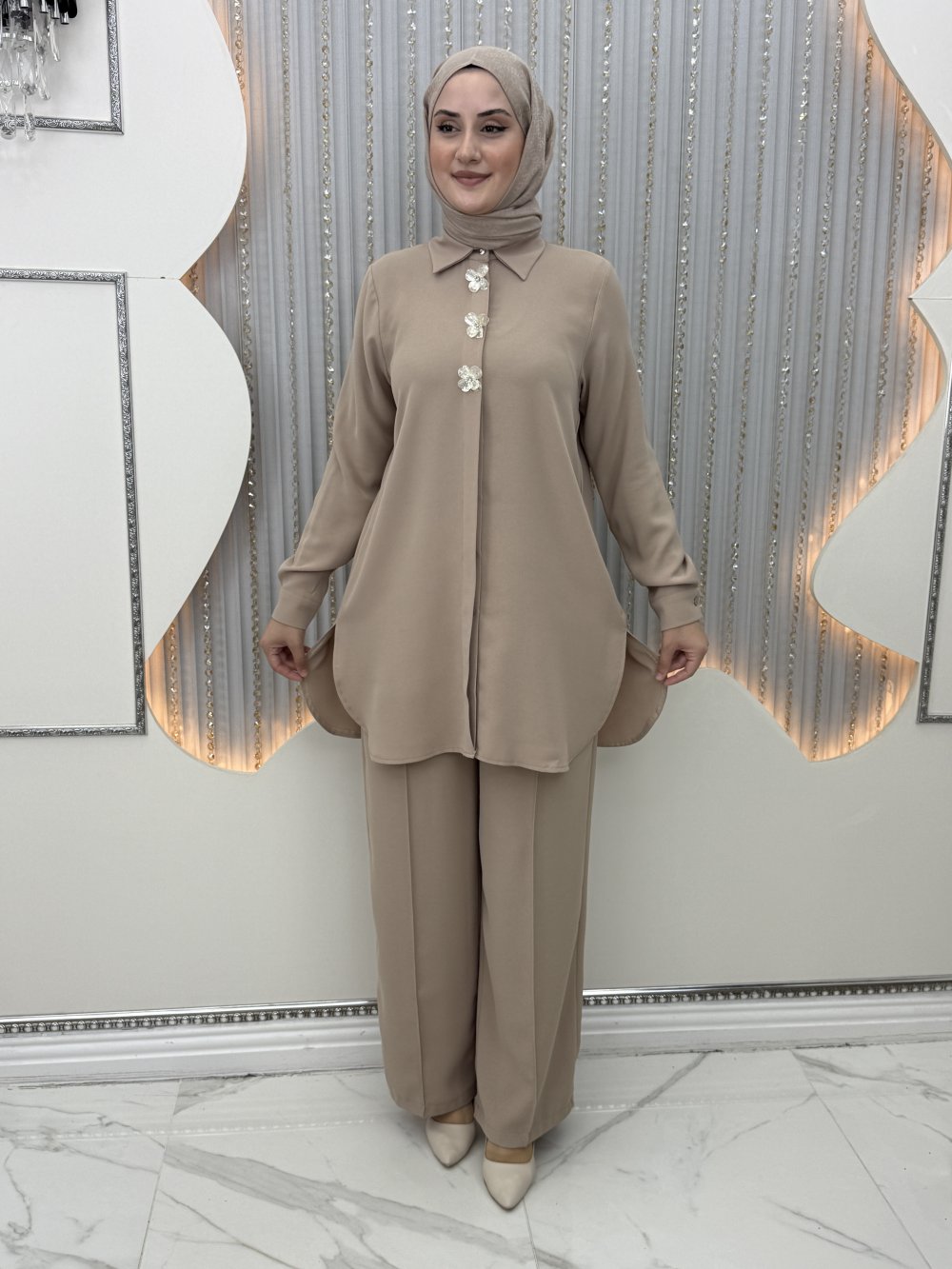 Tunik etek ucu yanlardan oval yırtmaçlı