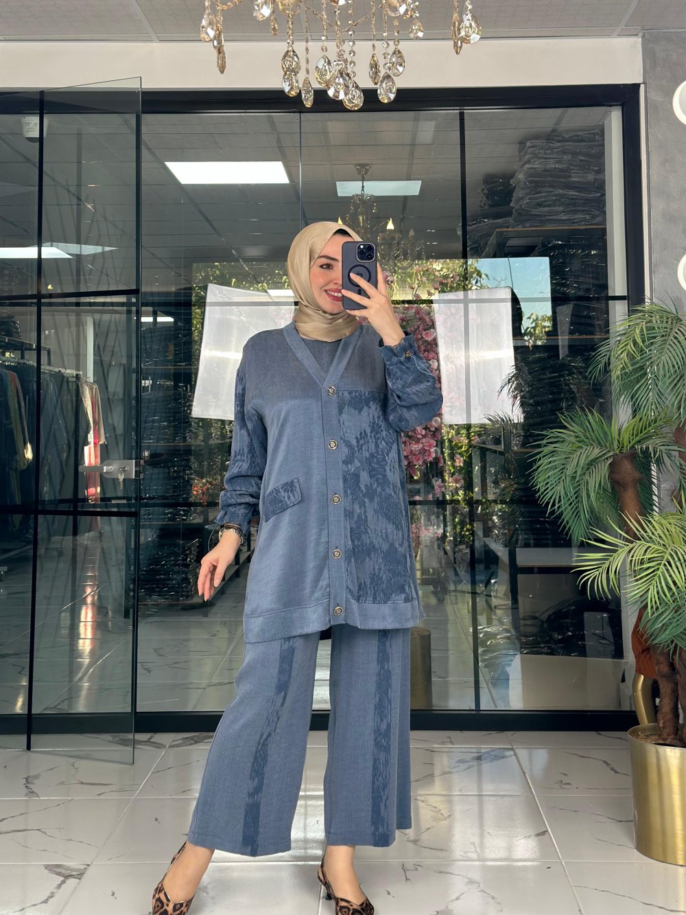 kumaşı ipek qupradır. İçliği sıfır kolludur. Pantolon beli lastiklidir. Cebi yoktur.
