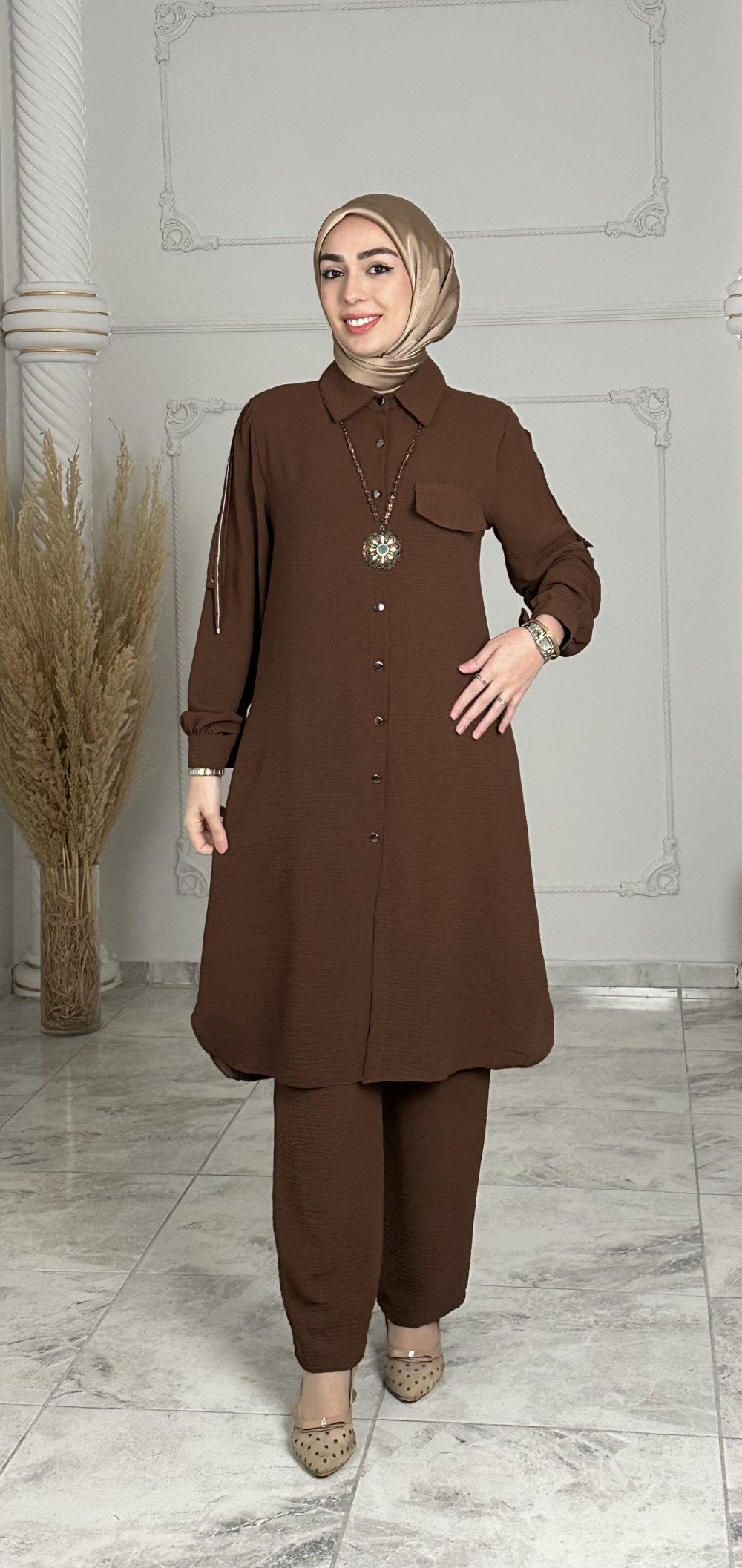 Tunik boydan metal düğmeli kolları  taş süslemedir
