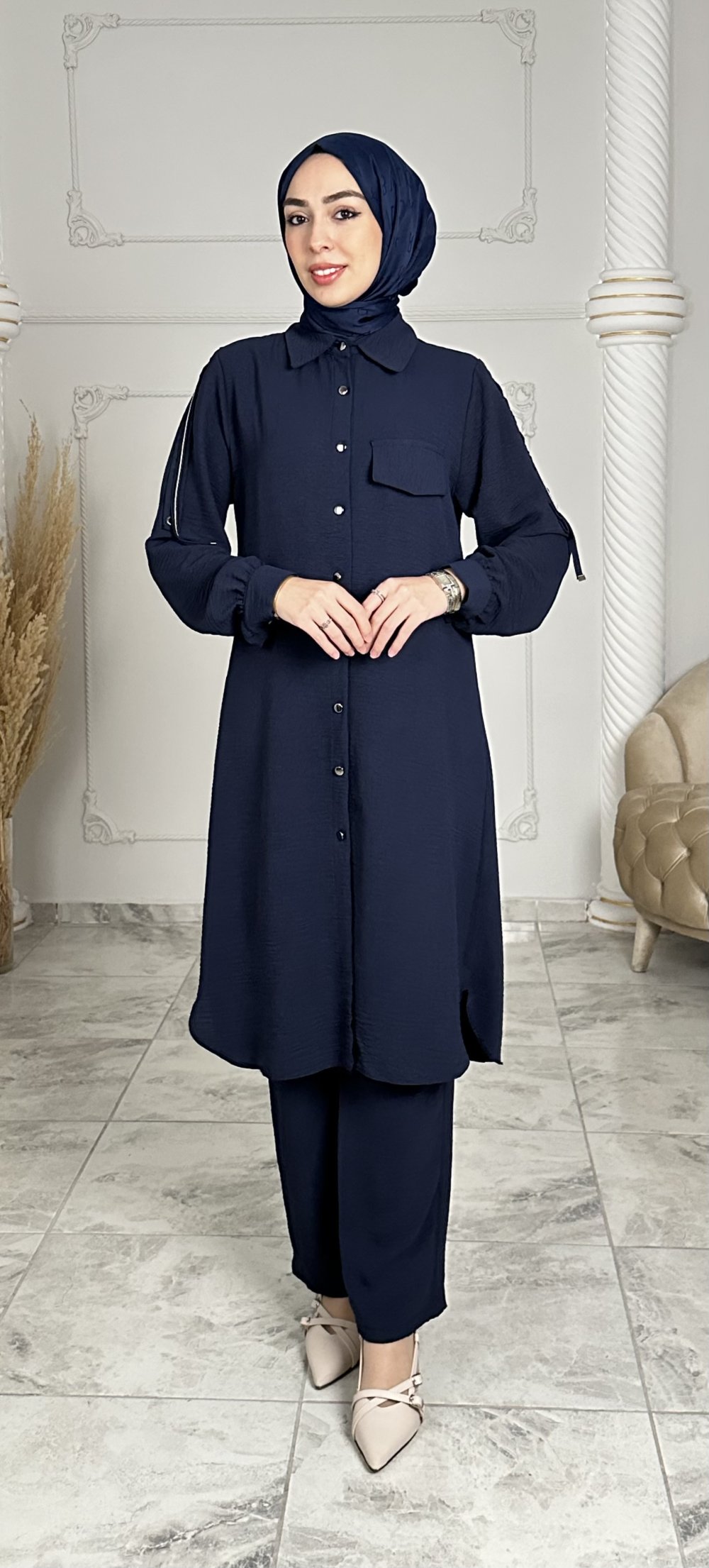Tunik boydan metal düğmeli kolları  taş süslemedir