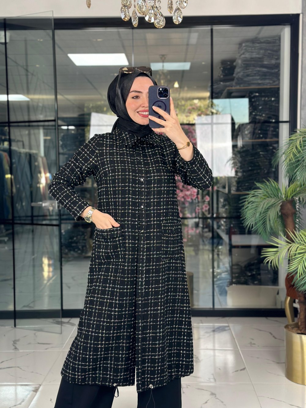 Kumaşı tüvit kumaştır. Kendinden simlidir. Önü düğmelidir.