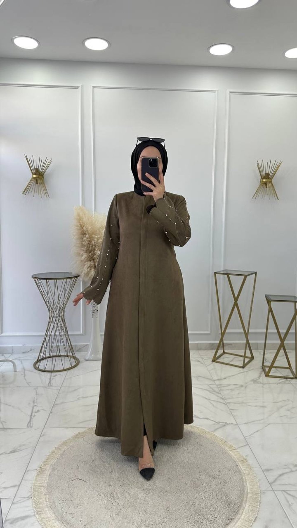 NUBUK KUMAŞ VE TAŞ DETAYLI SADE VE ŞIK FERACE MODELİMİZ