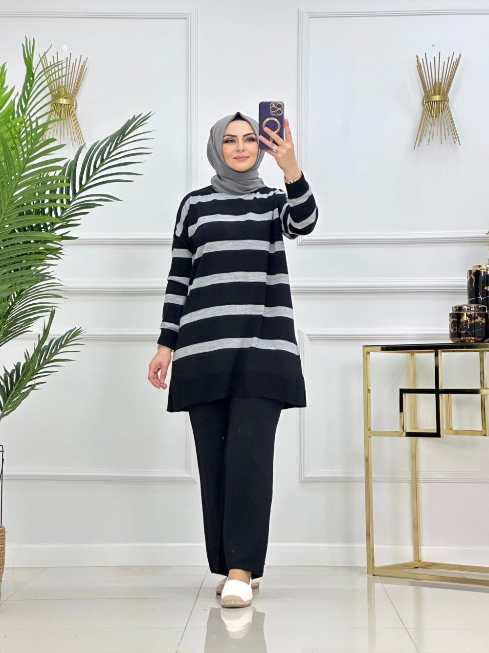 İnce triko kumaş Reyyan pantolonlu takım