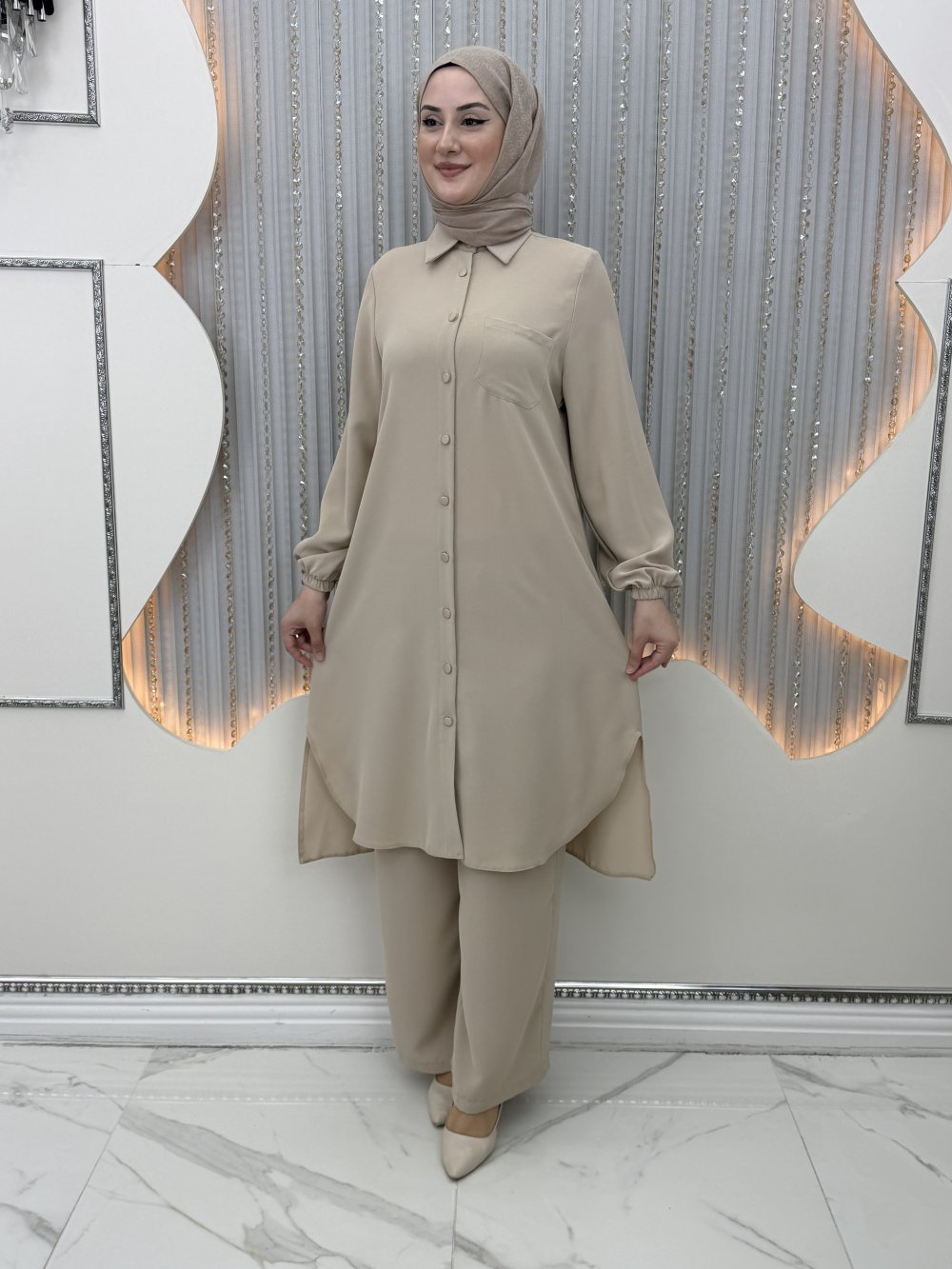 Rozalin Pantolonlu Takım Krem