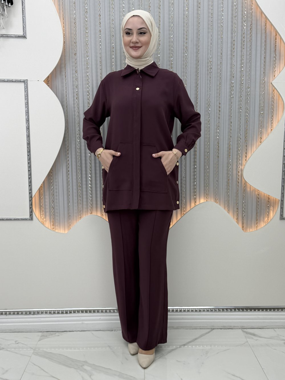 Tunik etek ucu yanlardan çıt çıt düğmelidir