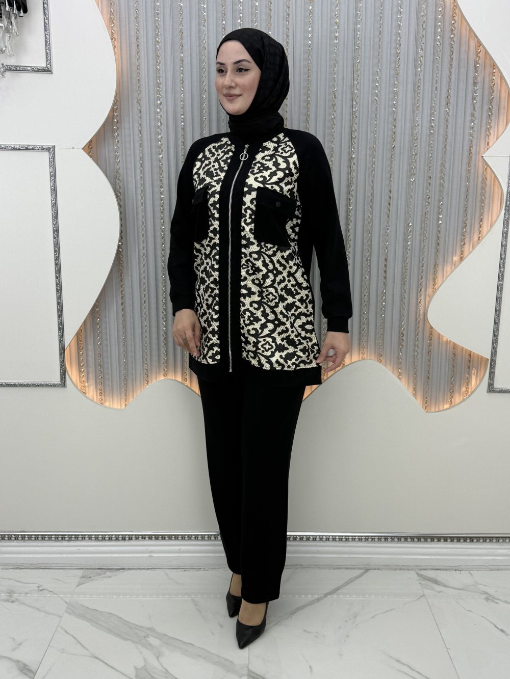 Sarmaşık Pantolonlu Takım Siyah