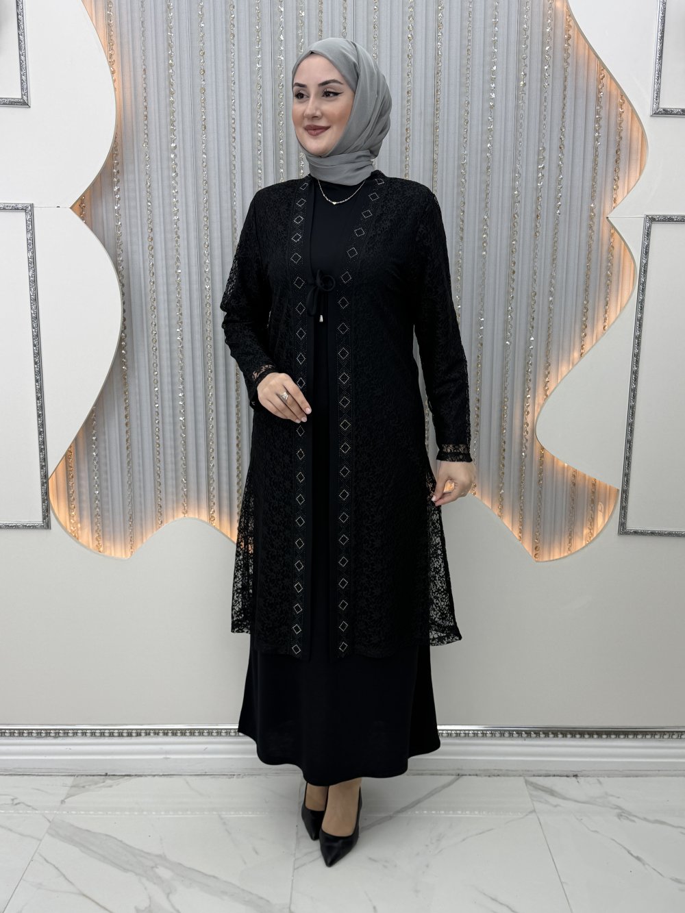Serin Elbiseli Hırka Siyah