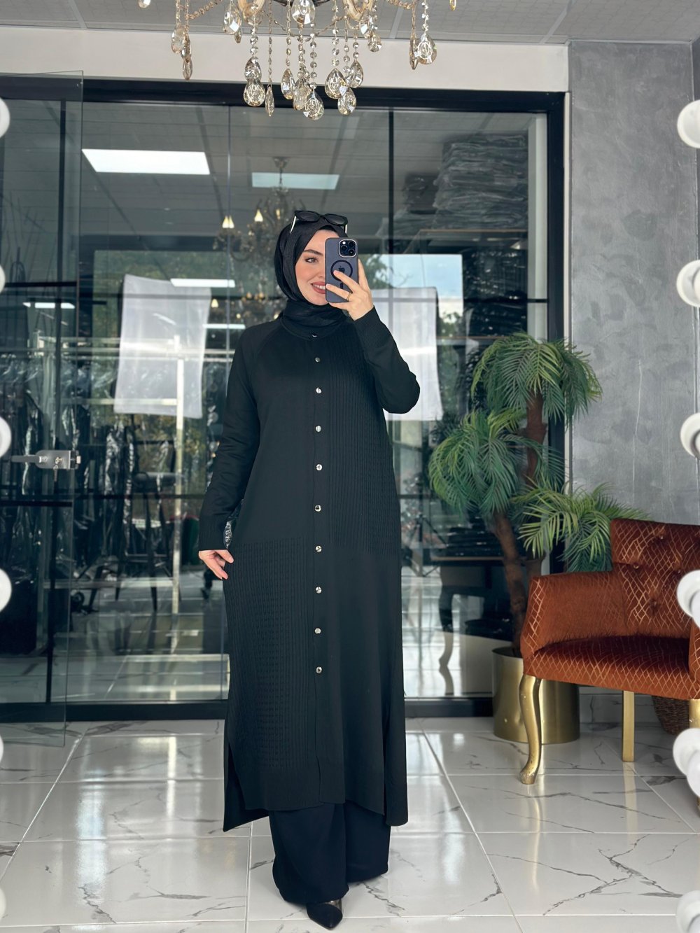 Kumaşı merserizedir. Önü düğmelidir. Cebi yoktur. Esnek kumaşa sahiptir.
