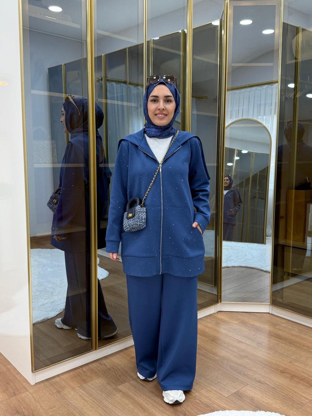 Pantolon eli lastiklidir. Yanlarda cepleri bulunmaktadır.