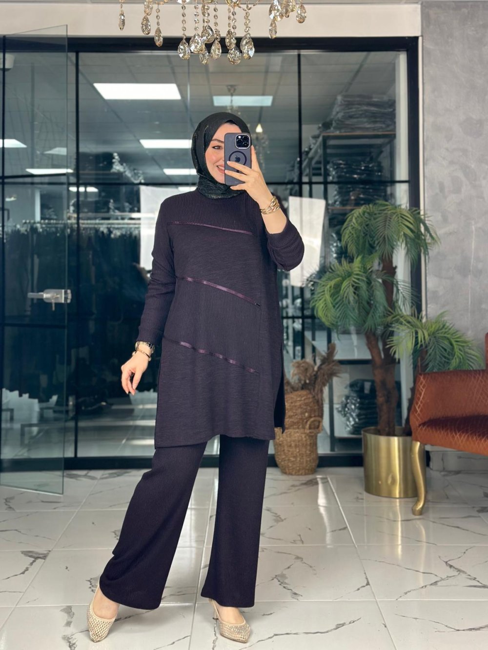 Kumaşı likralı örme kumaştır. Pantolon beli lastiklidir.