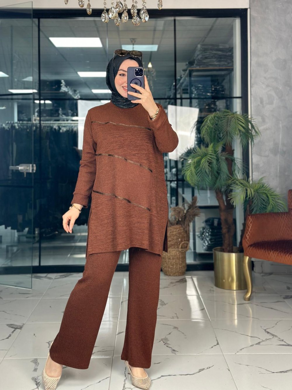 Kumaşı likralı örme kumaştır. Pantolon beli lastiklidir.