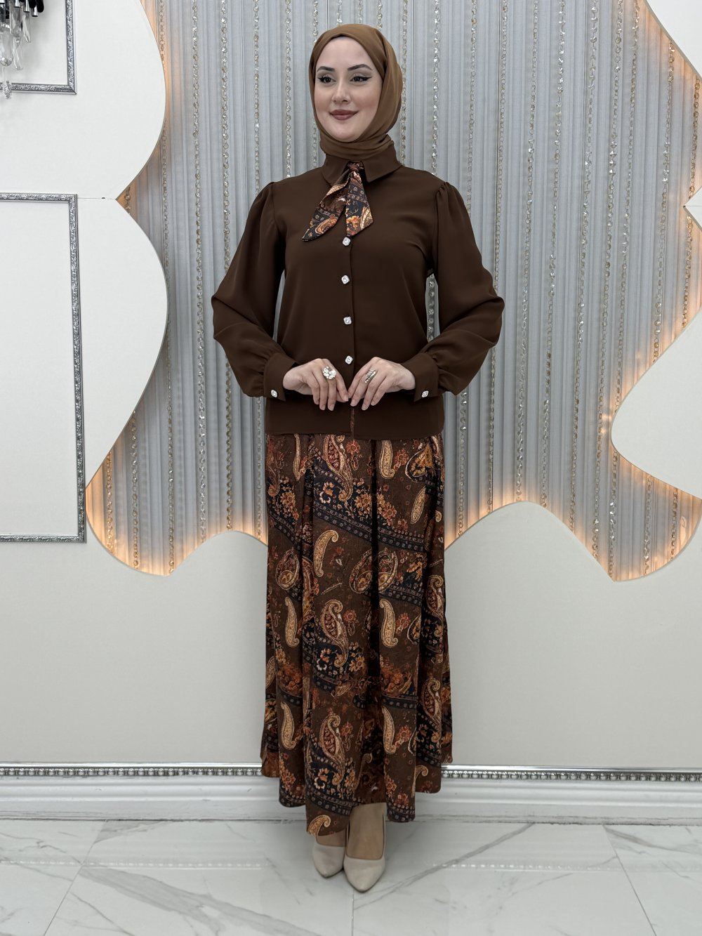 Ümmüş Etekli Takım Kahverengi