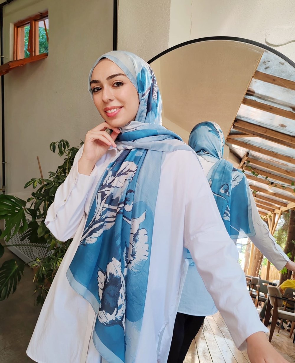 Yaprak Desen Soft Şal Açık Mavi