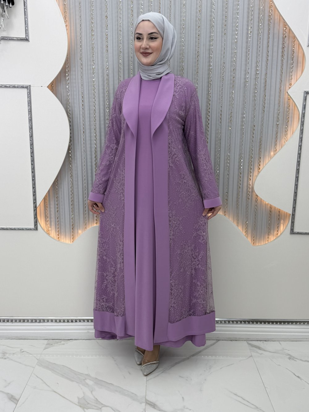Zarif Elbiseli Hırka Mor