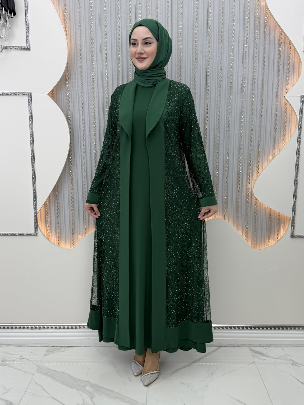 Zarif Elbiseli Hırka Zümrüt